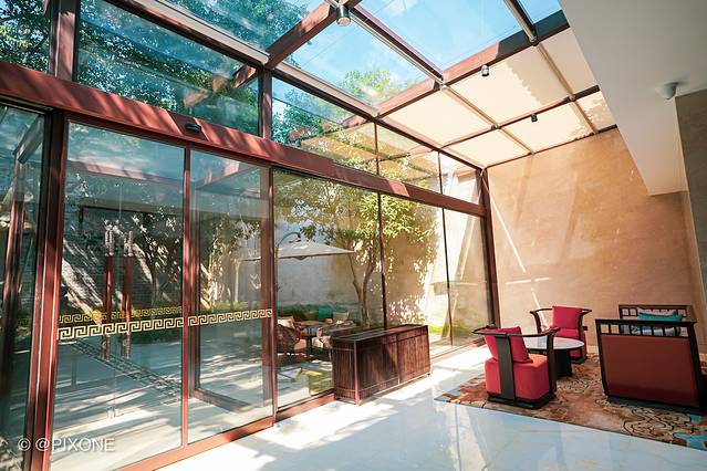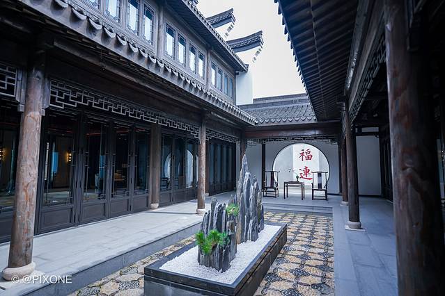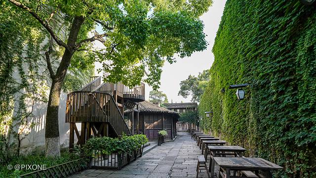 是一家展示浙江丝业历史的小型博物馆酒店,以老厅、庭院民国风格作为装饰基调,并搭配乌锦、刺绣元素等诠释当地丝绸文化。