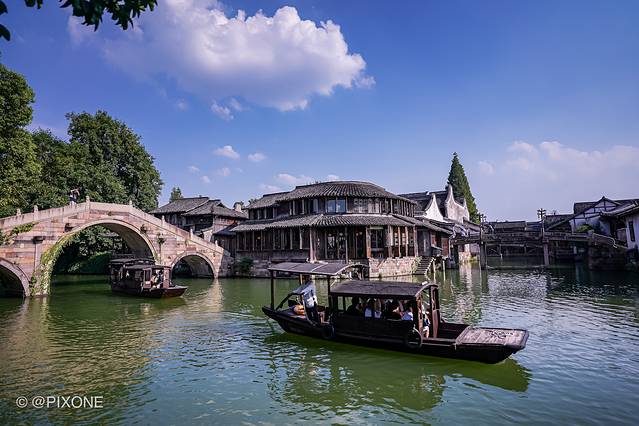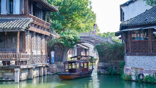 乌镇是一个有1300年建镇史的江南古镇,自古是水乡泽国,镇内河网纵横交错,“十”字型的主河道将乌镇自然划成四条大街,桥成了贯通东西南北的要塞,而桥下的船只,千余年来,都是重要的交通工具。包括婚娶,也会在水路上进行!