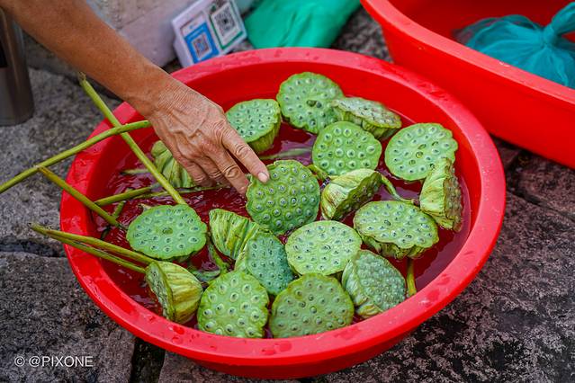每天早上,这儿会有人摆摊,也有摇着船来的,停在岸边,贩卖一些当地的瓜果蔬菜,游客也可以参与其中,挑选自己喜欢的物品,收入囊中。