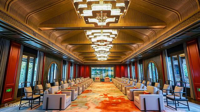 春蚕厅会议室,面积495㎡,设施配有接见厅、休息区、同声翻译间。