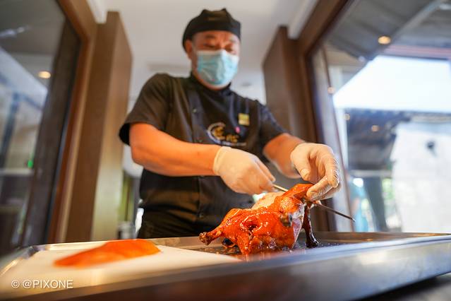 还配有明火烤炉,制作的烤鸭外脆里嫩,口感完全不输于北京烤鸭。