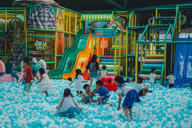 这里就是小朋友们的天堂,无数的泡泡球与滑滑梯,