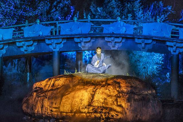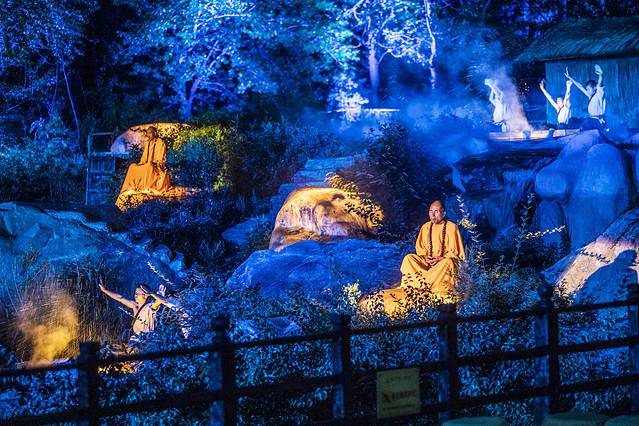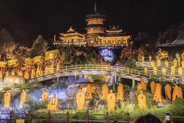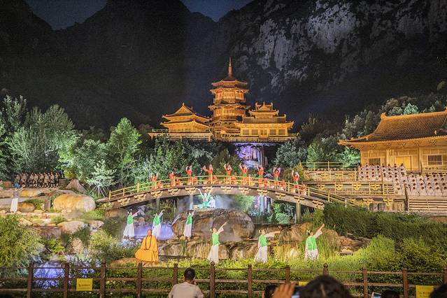 五个乐章,演出规模宏大,音画一体,近600人的禅武演绎,春夏秋冬的景观变化,直指心性的佛乐禅音,奏响了一曲中岳嵩山的辉煌交响,每天晚上的定时演出,成为中原文化旅游的一大亮点。