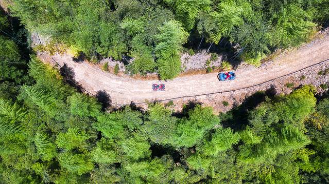 航拍视野:云驰沙滩车营地,坐落青山绿水间,山谷还有一处水库,仿佛是小九寨一般。ATV行车线路全程10km,全部位于封闭的山地,没有其他车辆、行人出入。第一次体验,开开停停拍拍照,大约也要1.5小时左右。线路分为:起点/终点、村道、山路。