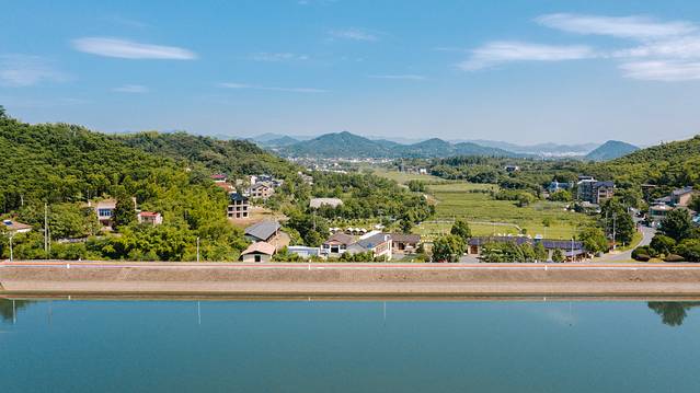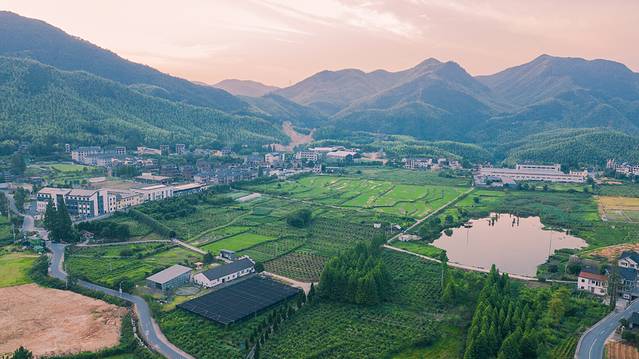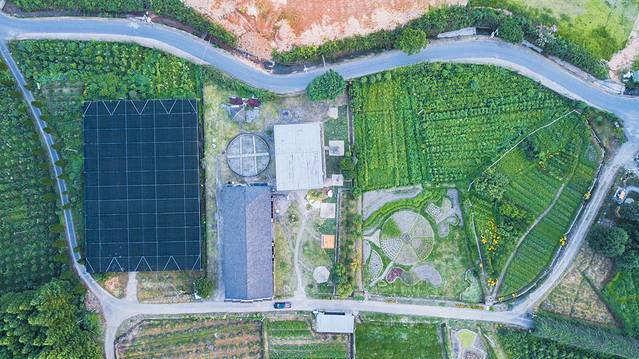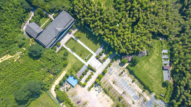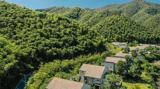 它的前身是林清轩山茶花苑,它是国内美妆行业的著名上市品牌之一,以山茶花润肤油为代表的山茶花修复系列为主。林清轩,代表森林、清泉、亭台轩榭,体现中华文化“天人合一”之意境。此前这里都是精油产品山茶树原产地,至今庄园内还保留很多山茶树。不过近年来,产能跟不上需求,因而转为香卉精油庄园,以农业观光休闲、旅游度假为主的一个庄园。置身其间,举手投足间,目之所及处,颇有林清轩品牌意境。航拍视野下,庄园占地面积很大,在七山一水二分田的安吉,这样大面积的山谷平原,确实很少。