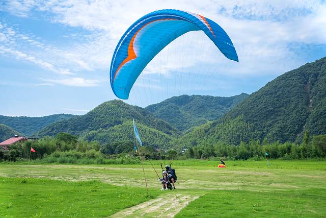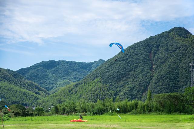 水陆空体验,来自中国竹海之乡的滑翔伞,也非常值得体验。不过鸬鸟国际滑翔伞营地,不是在安吉,而是在距离安吉县仅5分钟车程的杭州余杭区。它们在桐庐、舟山也都有滑翔伞营地。滑翔伞营地位于杭州去往安吉云上草原的必经之路上,所以,体验滑翔伞,适合安吉返程的时候体验。