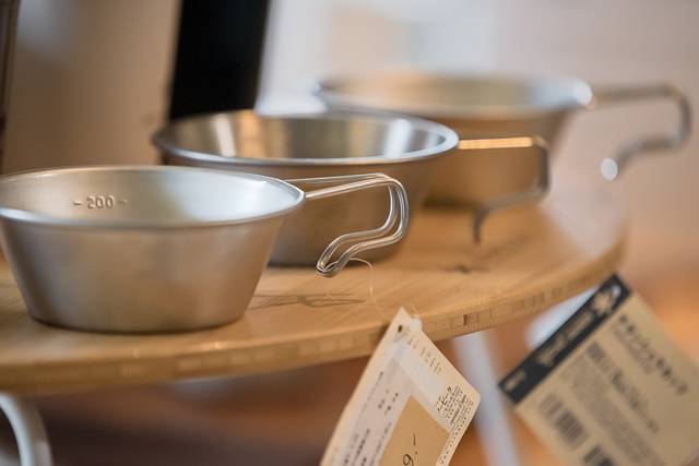 户外用品装备区,有很多新奇的装备,比如用餐折叠椅,3秒收纳,体积小,便携性强;营地灯红光闪烁是驱赶熊的警报灯;美国coleman营地灯;钛金属杯子、饭盒、炉子,可拆卸;此外还有日本SnowPeak全系产品,餐吧中心处的户外天幕--就是它的产品。值得一提的是,雪諾必克,创立于1958年,至今有几十年品牌历史。在户外用品界被誉为“LV”级别的存在,装备质量很感人,但是价格也稍稍有一些“赶人”,不是真正的户外爱好者,绝对不会青睐它。