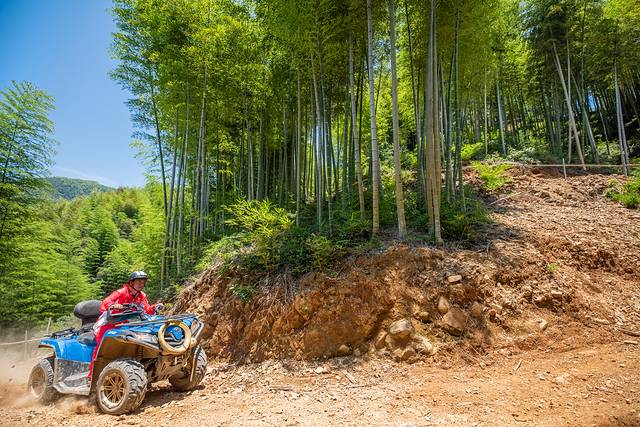 第一天清凉玩水,第二天,就是体验陆地清凉!这么热的天,陆地怎么清凉?ATV,全称全地形车。全地形车是指可以在任何地形上行驶的车辆,在普通车辆难以机动的地形上行走自如。在中国俗称沙滩车。因其结构与摩托车十分相似,且许多部件与摩托车通用,所以也有人称其为“四轮摩托车”。这类地形车,操控性简单,易上手;越野性能极强,很刺激;外观霸气,也很彪悍。成为现在年轻人喜爱的户外运动体验之一。无论是海边沙滩,或是树林原野,还是西部沙漠,这款车都能适应不同地形地貌。不过中国竹海之乡的安吉,置身万亩竹海中,驰骋在山林里,这般体验,可能很多人都没体验过。距离安吉仙龙峡,仅2分钟车程的云驰沙滩车基地,就是主要行程打卡点。