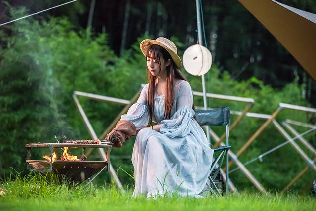 临近日落间隙,昏暗柔弱的峡谷中,亲朋好友在此烧烤露营,还是非常惬意;同时难得夏夜,置身竹海秘境,也很适合拍照打卡。从杭州NOXbase美式餐吧购买的,Snow Peak的户外露营装备,带上的露营烧烤餐品,齐活了~