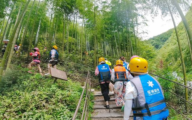 第一天上午,在杭州NOXbase美式餐吧&棒球打击馆体验后,自驾出发,大约40分钟就到安吉仙龙峡溯溪漂流·运动营地!大中午的,必须是钻进天然峡谷、繁茂竹海里,玩水啦~~~早几年前,来过这里,不过去年景区峡谷上方道路施工无法体验,今年刚复漂!取消了坐景交车去上游起漂点,改成时髦的涉水户外体验——溯溪!先上图,还是不错的感觉。