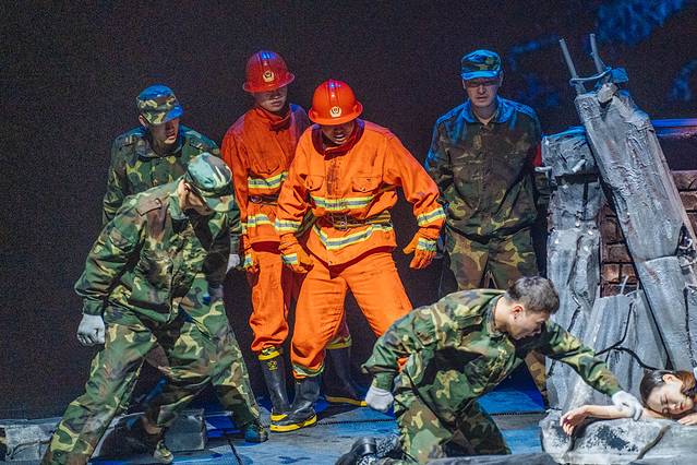 这一场实景剧讲述的是汶川大地震时的悲壮场景,真实的这体现了中华民族在面对灾难的时候,万众一心。