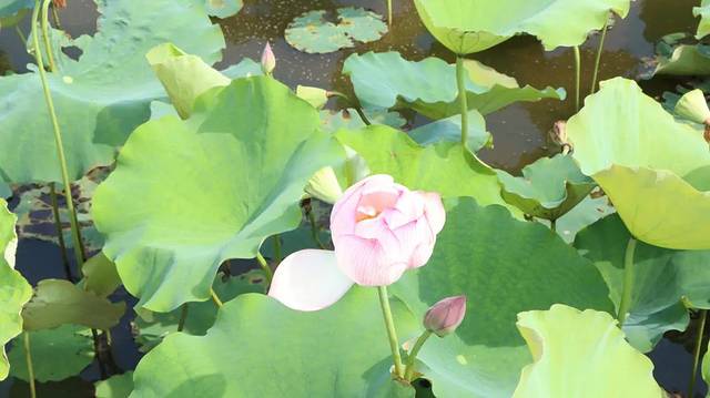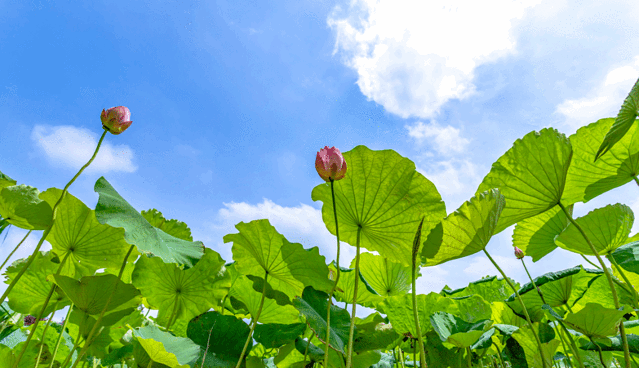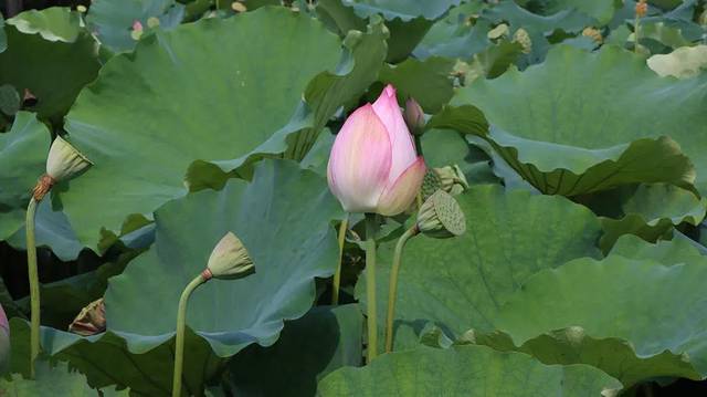 与睡莲相比,高杆莲开得更为旺盛,但其中也有一些花骨朵含苞待放,像一个腼腆的小姑娘,不愿意向人们露出她的笑脸。