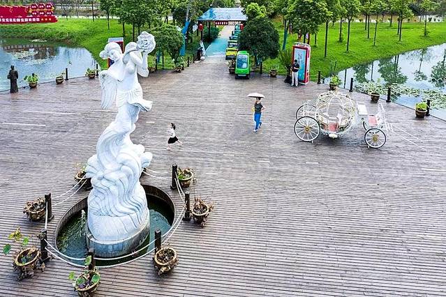 为迎合青年群体,园内更是打造了多处网红建筑,埃菲尔铁塔、南瓜马车,童话世界里的公主梦,在这里就能实现。