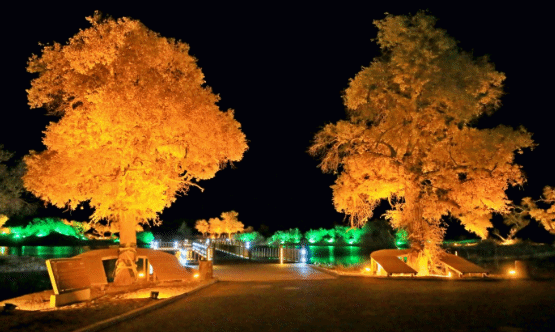 我们来景区前就在网上那个查找了大漠胡杨林攻略,看到了夜景胡杨林的图片就一直很期待晚上的降临,果然夜景胡杨林没有让我们失望。