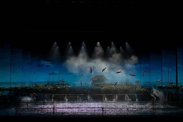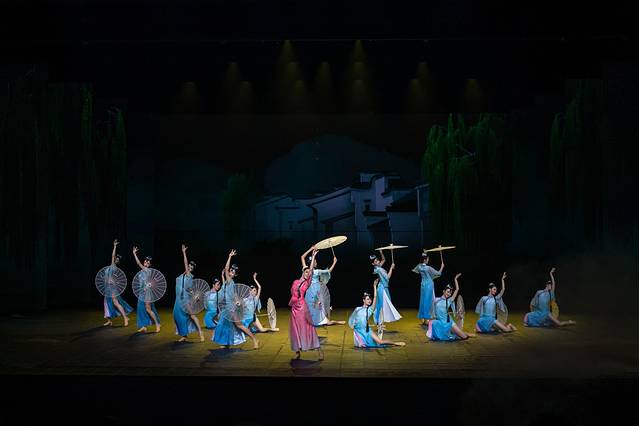 舞台以唯美风光为基调,实景虚景,灯光效果与舞蹈融合,让人仿佛穿过时光迷雾,细数那历史烟云的过往。
