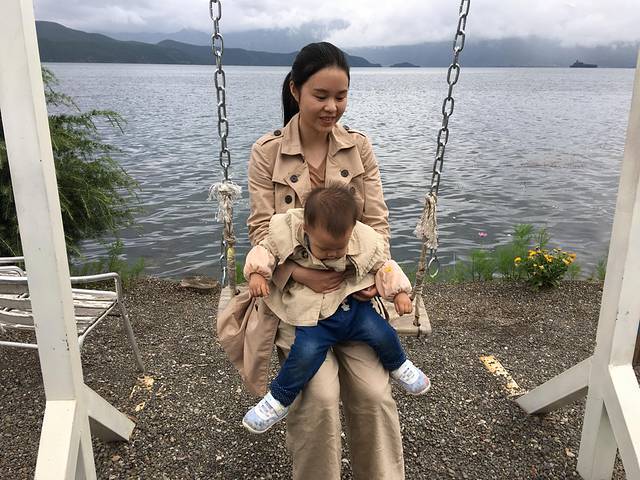 进景区后,直接导航住宿印象水云间精品度假客栈,当时只定了一晚上,去看了房间后,果断把这几天的住宿都安排在这家了,风格是我喜欢的北欧木质风格,而且听涛房是面朝泸沽湖的,还有星空房,星空房还是不错,但楼层低,第一晚是我带娃娃和老公住的,家里人觉得不安逸,强迫我们换了亲子房。办入住后,我们在附近逛了逛,有卖芒果的(味道超级好吃),沿路都有各种网红拍照道具,像玻璃秋千,都没有人管,听说旺季是要收费的。逛完之后我们在住宿的隔壁吃了中餐,他家正在烤兔子,按份卖。