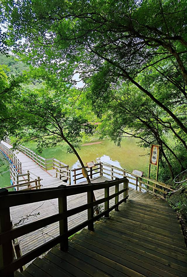 走过迎客瀑布,上一段台阶就到了这座浮桥