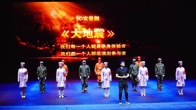 大地震:5D实景剧,参与性强互动性强。主持人一开始会在台上现场邀请39名观众参与演艺5.12汶川大地震实景剧,观众上台后换服装,跟着现场指导参与其中,简单易学,表演还挺感人的。