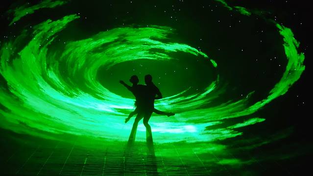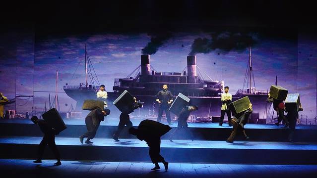 这一幕,淋漓尽致的表现了民国时期上海夜晚的歌舞升平。水幕之间,唱歌的女性,韵味十足。