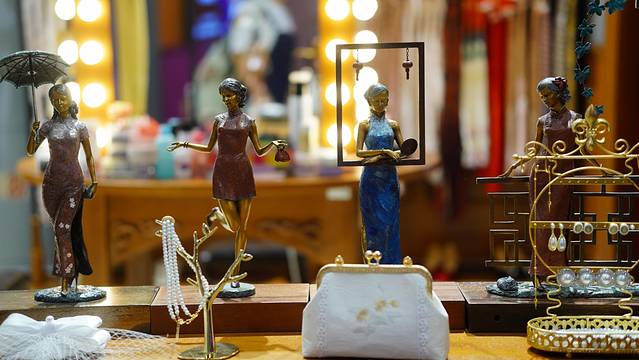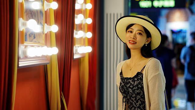 4、穿越街(1F):穿着旗袍在暖色光束下拍照特别有韵味。