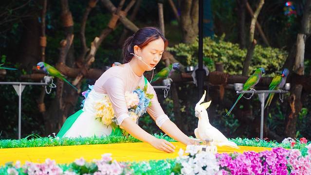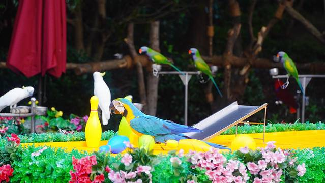 《森林神鸟》:现场有十几只世界不同品种的鹦鹉,各有本领,有说人话的,有灌篮的,有滑冰的,有打保龄球的等
