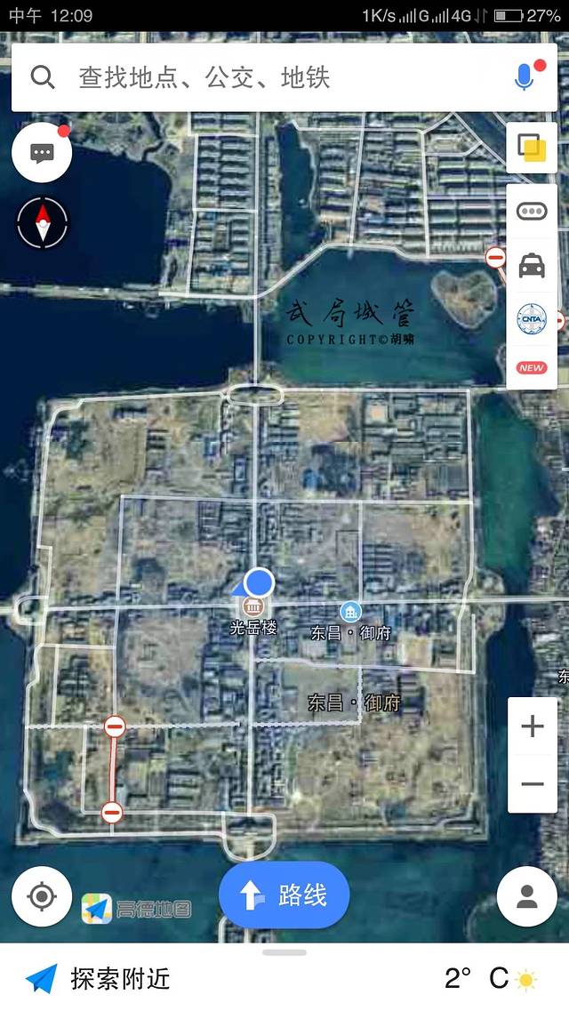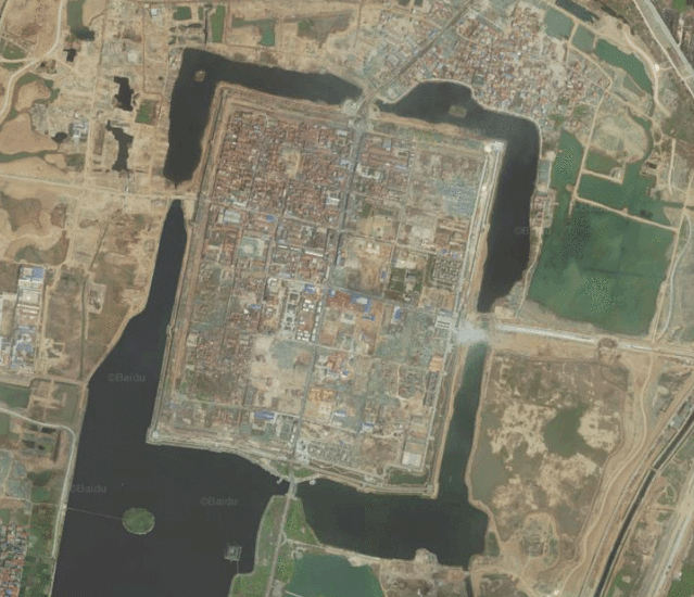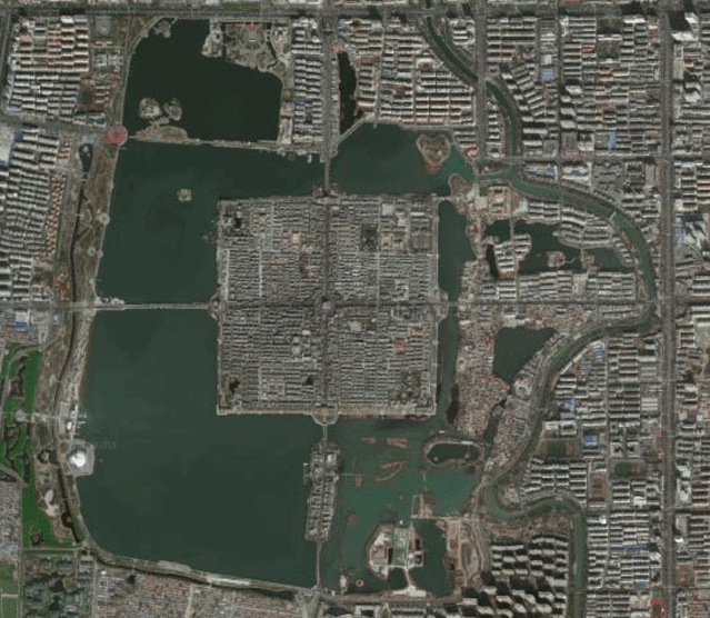 这块正方形城建,号称中华水上古城。那我倒要去实地去看看,是不是真的像卫星图上的那么方那么正,再登上田字城建的中心点——光岳楼,做为制高点拍一张水上古城全貌。
