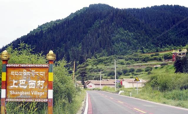 离开莲宝叶则后回到阿坝县城,再沿路南下到“神座”,这个被称为世外桃源的地方,因为这座几十户人家的藏族村落背靠高山草场,而隔河相望又是绵延不绝的原始森林。是即有原始森林和高山牧场,又有海子、河流、沼泽、野生动物与人和谐相处的原生态的自然景区。这是村子和背后的高山牧场。