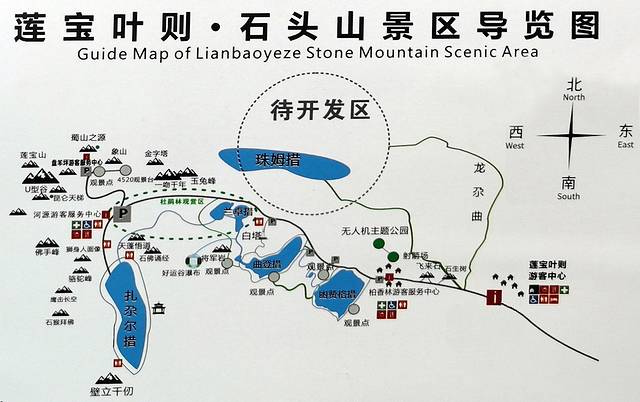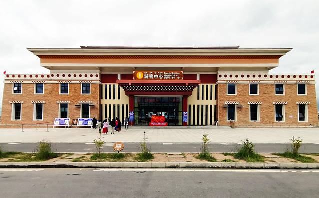 里面的一个主停车场位置,这里步行1.2公里有个比较大的湖,叫扎尕尔措,是景区内最高的湖。但是车子也可以继续朝前开到一个较高的位置,那里也有一个停车场。