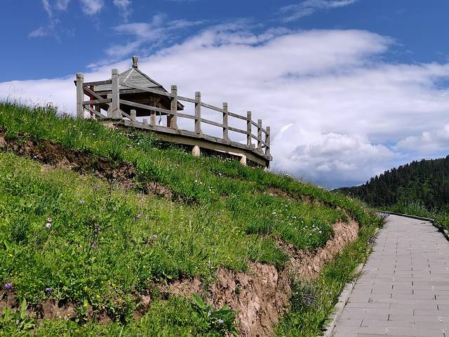 神座村后山的原生态高山草场,踩着几百级台阶登上山顶,可以休闲、骑马等。