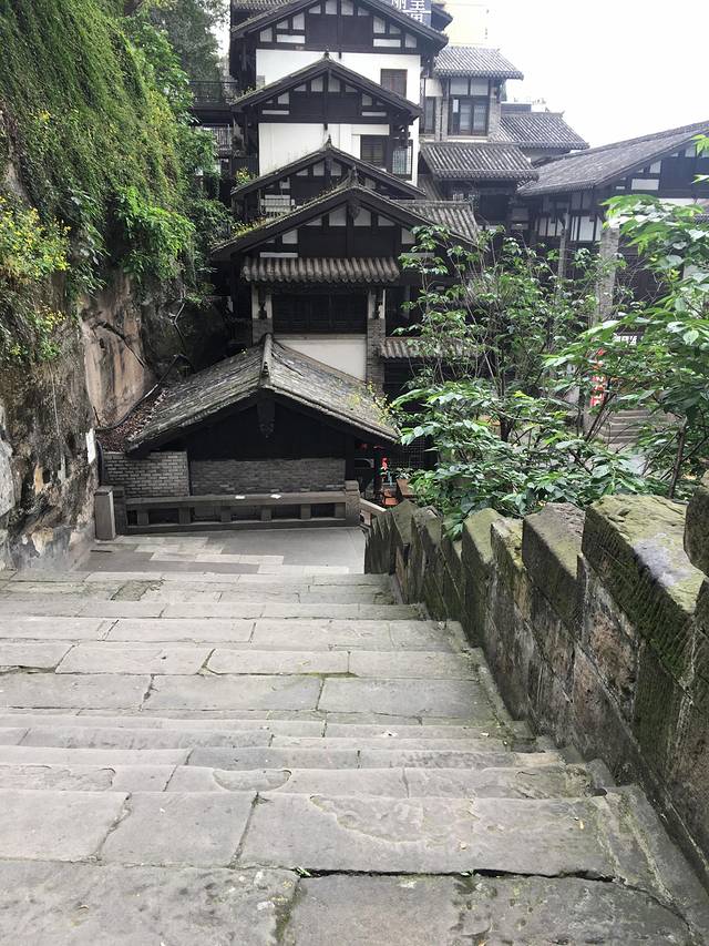 第二,长江索道至湖广会馆。长江索道出来后我们就前往湖广会馆,百度地图显示不远就走路过去了,但是强烈建议大家一定要穿运动鞋或者舒服的鞋子,因为不远也能绕好久,走了无数的坡,上坡下坡再楼梯,还有在重庆不要相信百度地图或者别的地图,不懂的还是老老实实的打车吧,会少走很多冤枉路。