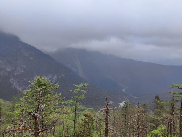 下山路过杉树林,可以想见好天气时的美景。