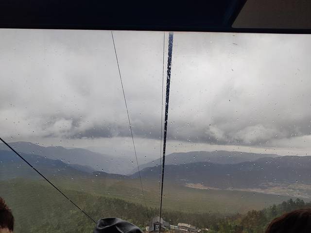 可惜没赶上好天气,雨雪交杂,山里更是水雾缭绕,透过缆车只能隐约看到窗外景色由葱郁的绿渐渐覆盖上稀疏的白。