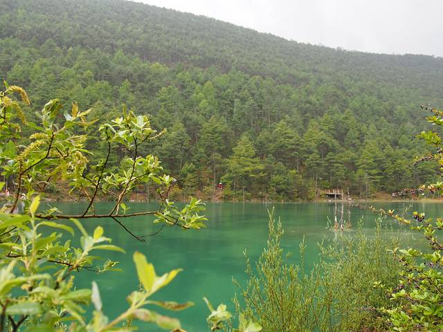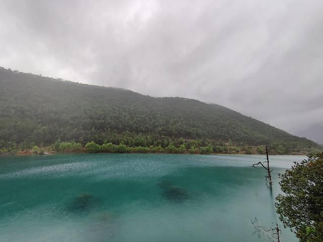 从不同角度看过去,湖水随着光线变化呈现出深浅不一的蓝绿色,就像一块水头很足的翡翠,晶莹剔透、娇艳欲滴。