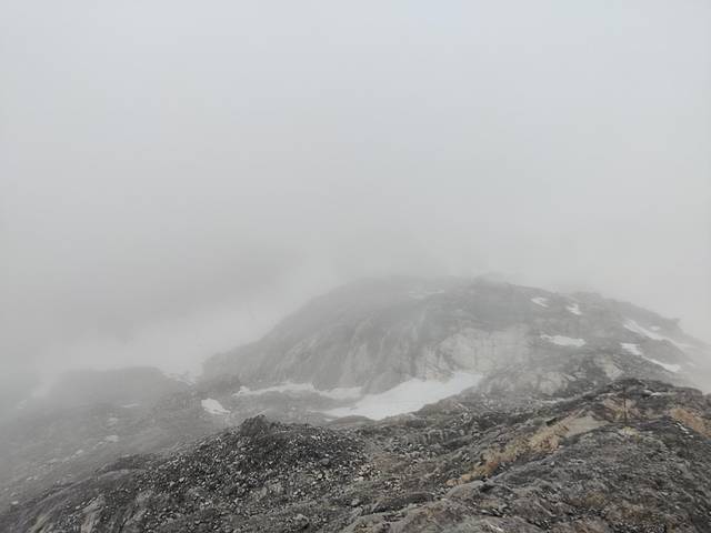 成功登顶,继长白山北坡后又一次被风雨毒打,还是雨夹雪,能见度不足五米,害。