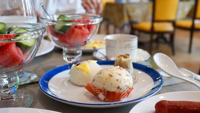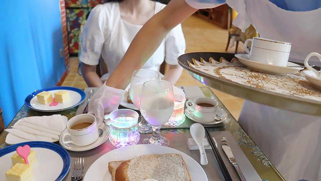 清晨,睡到自然醒,打开窗帘,站在阳台边看着远方的城堡,哦,远方的天色不太好,搭配城堡,反而有一种大片的既视感,当然了,逃不过的一场雨也即将来临。酒店里的早餐,样式多样、供应暖心,侍者穿着童话中女仆的装扮,我们享受着公主的待遇。窗外,传来管琴清脆、空灵的敲击声,好听极了。