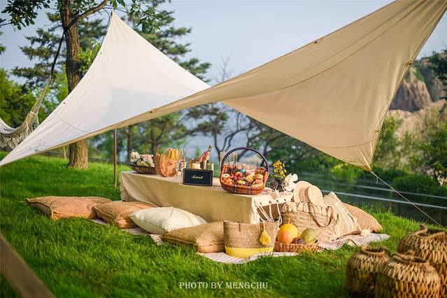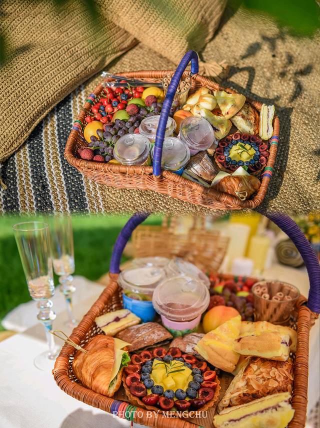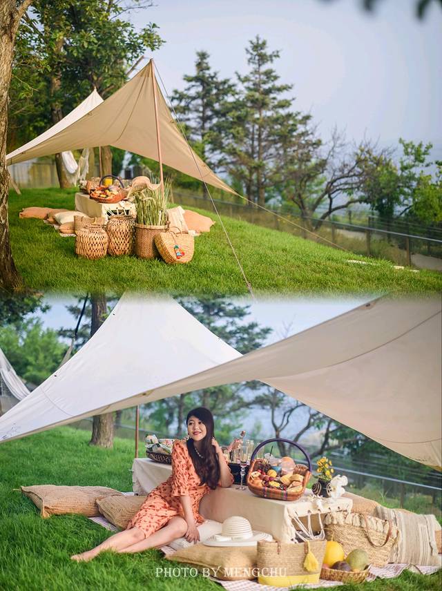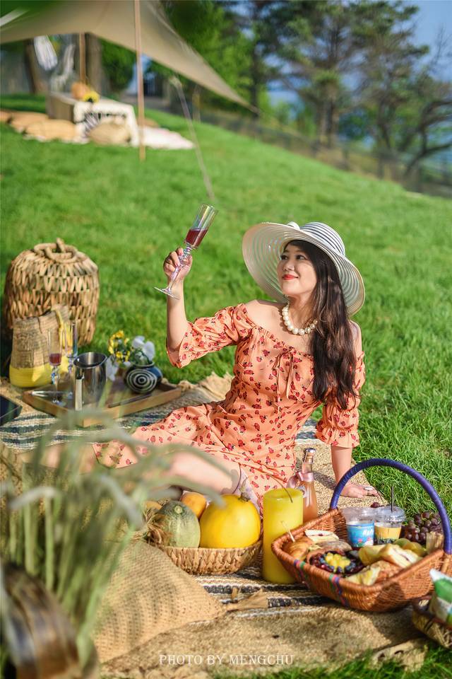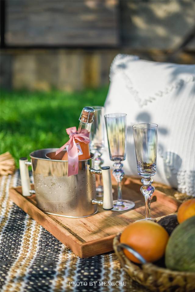 大连四时鲸语酒店布置的这份小小惊喜,给浪漫的度假时光带来一丝清凉与甜蜜。仲夏阳光倾洒在面海的山坡上,草坪上铺一方针织毛毯搭一顶森系帐篷,矮几上摆满了丰盛而精致的食物,——新鲜应季的大连樱桃,饱满多汁的葡萄,鲜艳清甜的荔枝,还有香甜松软的面包和香甜诱人的水果挞,饮品则选取了很适合夏日的西柚汁,微苦的味道解暑袪火,杏味的起泡酒口感非常清爽细腻,很适合女孩子的口味。从布景到食物,再到远处的海湾美景,处处都充满了丰饶奢华的南法风情,换上碎花连衣裙,与女友们浅酌慢饮,留住关于这个夏天最美好的回忆~