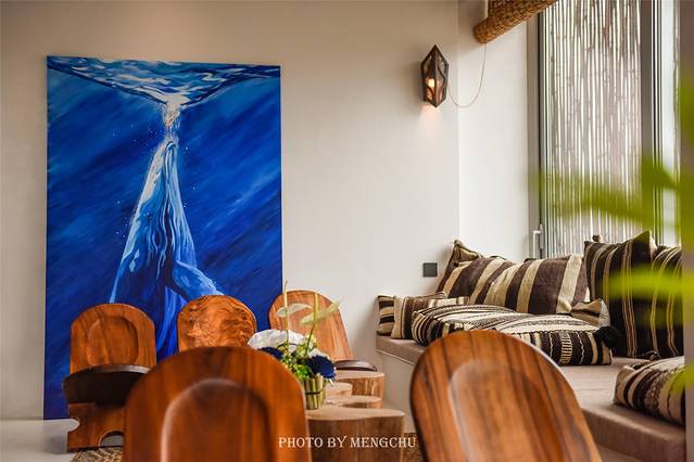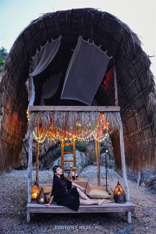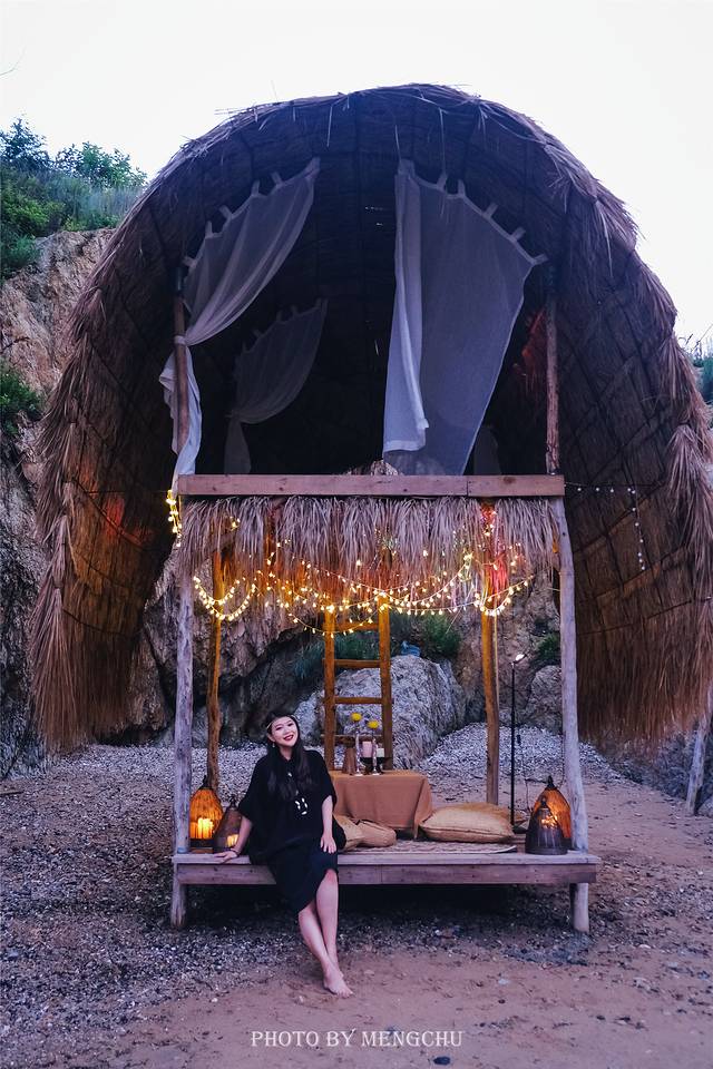 沙滩的隐秘角落里搭起一座双层的茅草屋,有个浪漫的名字,叫做鲸尾亭。铺着草席,挂上纱帘,充满了浓郁的东南亚风情。黄昏时候,当日暮渐渐隐去,当海风变得温润,当茅草间星星点点的灯光亮起,可以舒舒服服地窝在鲸尾亭中,靠着柔软的抱枕,裹着管家送来的毯子,等一场沙滩露天电影的开场~ 大连的夏日夜晚,堪堪只有23℃,是那种舒服到会让人每一个毛孔都自由呼吸的温度。如此浪漫的鲸尾亭之夜,你值得拥有~