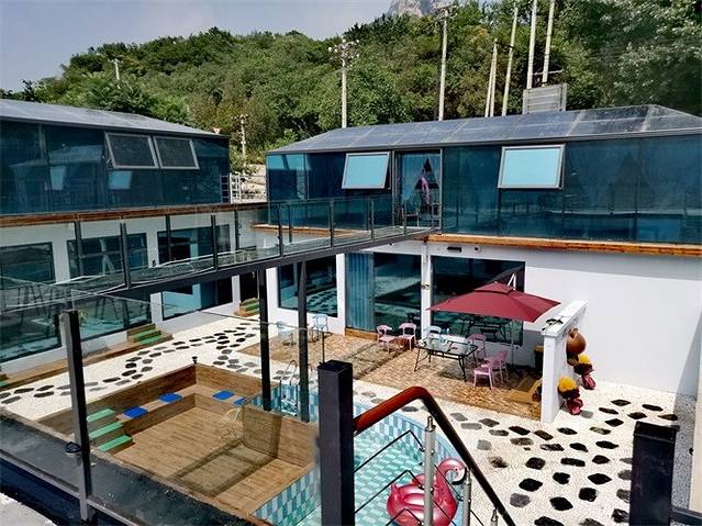 庭院中配备开放式厨房及美式工业风餐厅,无论是三五好友小酌或美满家庭团聚,都可一展厨艺大,家庭团聚,酒足饭饱之后,移步至独立“KTV”包房,白日观山望水、晚间赏月览星,或饮一杯红酒与挚爱之人互诉情愫。