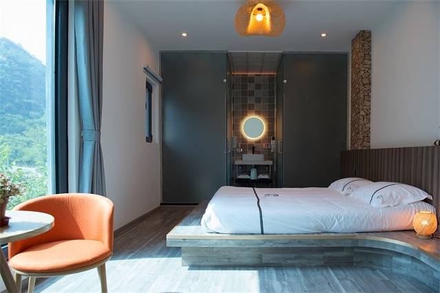 民宿特色的装修风格,吸引人的眼球,这样独特的设计打破了日常所见的民宿风格,形成了自己的特色,也很具有代表性,客人在这里感受山水风情的同时,还有了更多的室外活动空间,发发呆也是相当的惬意。