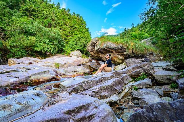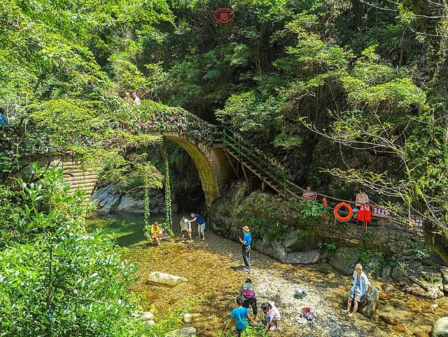 3公里的百丈崖,也是一个集青山、绿水、奇石、飞瀑、幽谷为一体的景区,但是短短3公里,却有瀑布30多处,碧潭无数,原始森林参天,所以景区里非常的凉快。