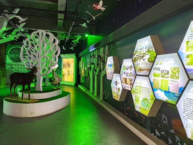 展览馆一共有四层,一楼主要是秋浦河源国家湿地公园展示馆。当年李白来石台,创作了多首关于秋浦河的诗篇,因为秋浦河是石台的“母亲河”,这里的生态环境特别优质,湿地物种具有多样性特点,而我们在秋浦河源国家湿地馆里展示的部分动物、鸟类、鱼类的标本,都是真实的,令人大开眼界。