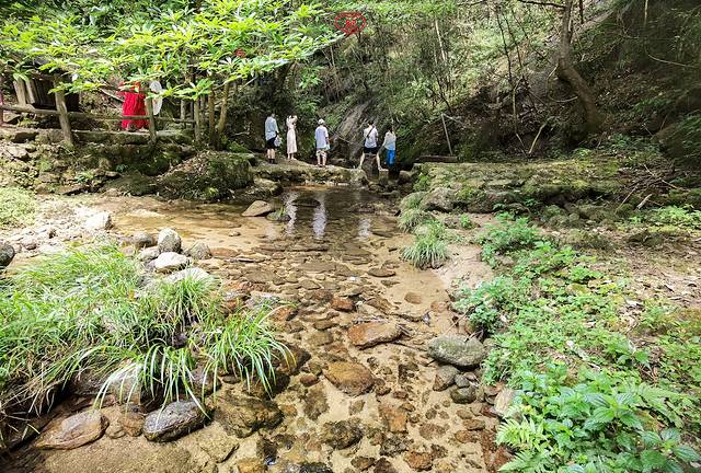 一路上走走停停,溪水清澈见底,由于天气炎热,每一个来到这里的游客,都脱了鞋子下水嬉戏拍照,就连老人家们也是玩的不亦乐乎,感觉好幸福的样子。