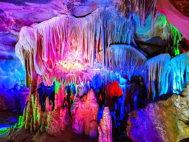 去过很多地方的溶洞,但蓬莱仙洞却让我近距离接触到了大量纯白色的精美的钟乳石群,与众不同。这个溶洞大约有3公里长,走进洞口的一瞬间就马上跌入十几度的空气里,非常非常凉快,3公里走下来,甚至会觉得有些冷,超级适合避暑。