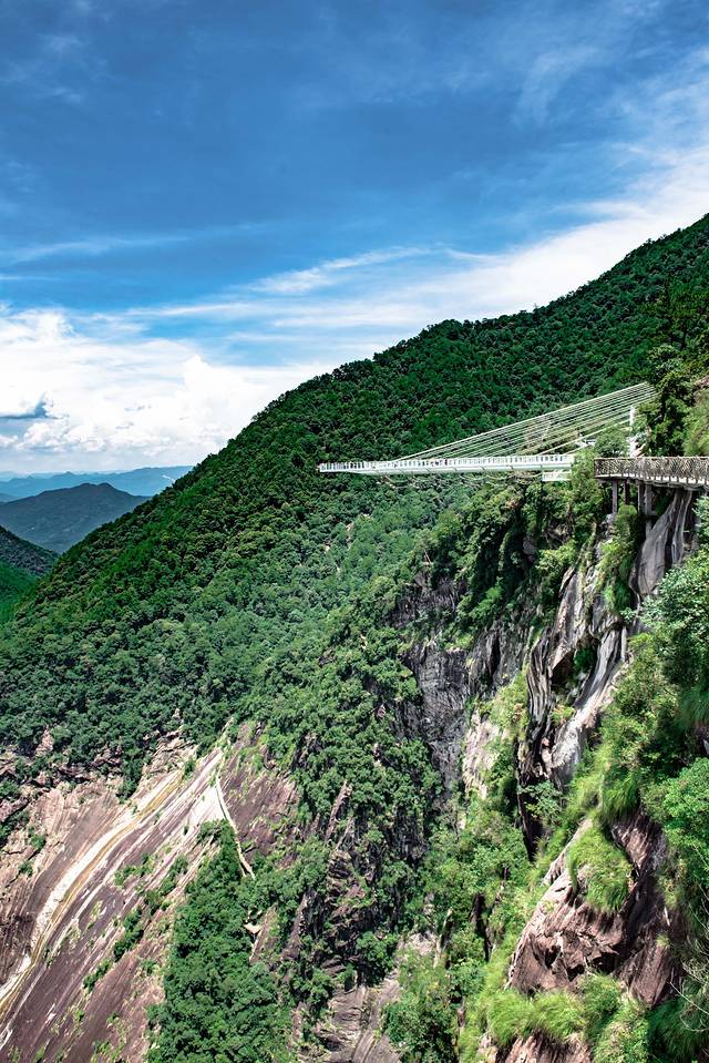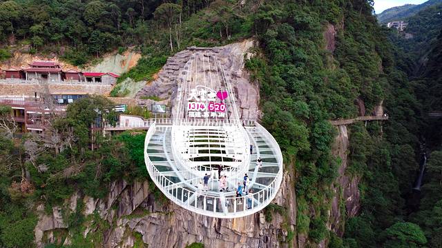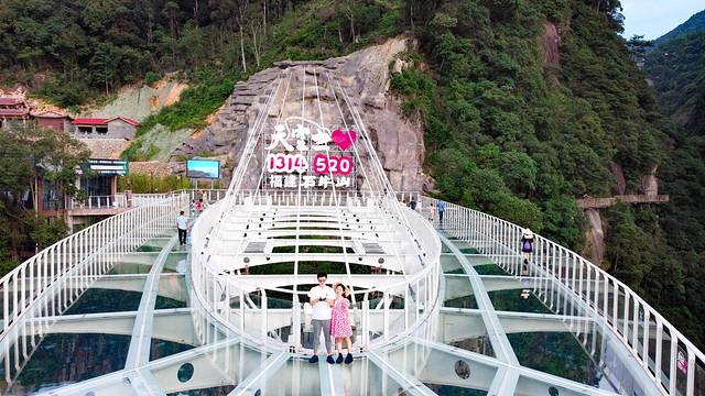 天空之心是悬空高度314米、外挑悬空长度52米的520玻璃观景台,面积整整520平方米,它位于岱仙瀑布顶端,是景区的网红打卡点和爱情圣地!恐高的朋友一定要小心,站在这里,人如浮在空中,惊险刺激。和你爱的那个他,紧握彼此双手,站在天空之心观景台上,感受彼此的心跳。有爱的那个人在就有最大的安全感。