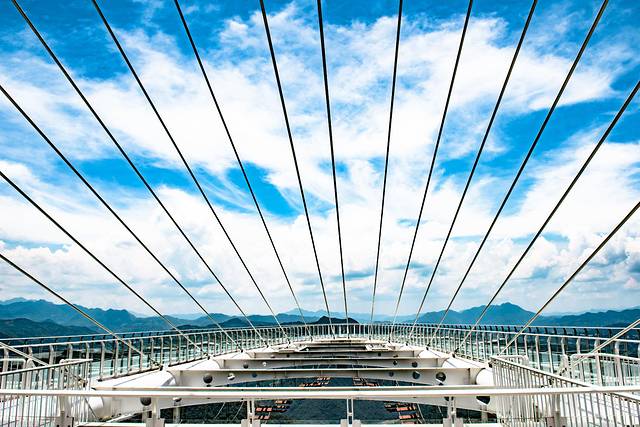刚刚修建完成的玻璃观景台都是全新的,白云倒映在玻璃上,映衬着夕阳的景真的是美呆了。任意找景随手拍都是一张张美图,绝佳的风景照怎么可以错过。无论是站在上面拍人还是拍远处,都是大片。
