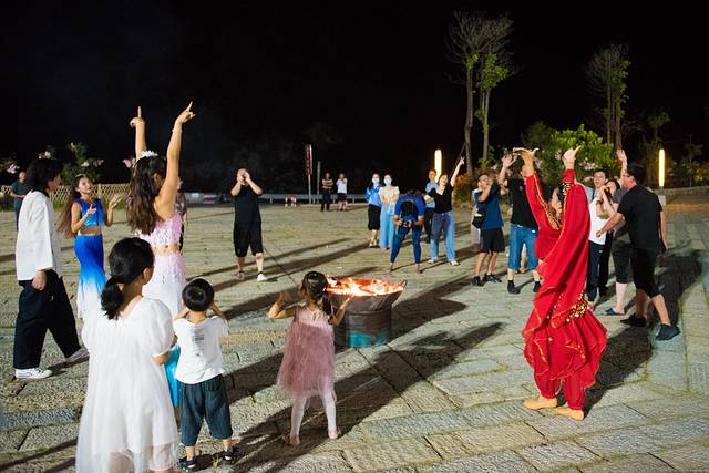 别以为晚上就会失去乐趣,岱仙酒店特意举办的篝火晚会会给你带来惊喜。盛装的表演人员为我们创造气氛,游客们也会自发地加入围着火炉开心的跳舞唱歌,四处是酒店的灯光。石牛山的夜晚大家都不愿意错过,热热闹闹的人群里肆意狂欢才是正确的打开方式。平凡普通的台路就变成了狂欢热闹的广场。这也算是别样的餐后运动了吧,晚会结束之后洗漱睡觉,一定会是一个香甜美满的梦。