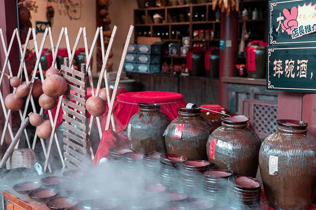 古街里很多商铺,每一家商铺都是一个小型体验馆,不但可以置身感受还有很多游戏贯穿,体验过后,更加深刻地了解了很多书中文字无法会意的文化传统。汉服、手鼓、扎染、刺绣、土家摔碗酒等等,刚走出一家又被另一家吸引,每一家都别具特色。