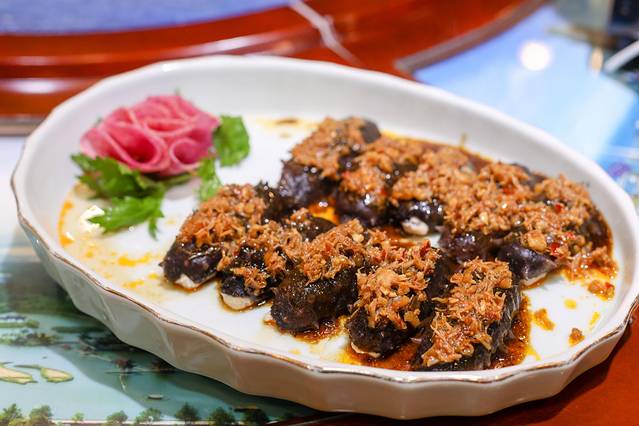 威海 盛产海参,作为海八珍之一的海参,营养丰富,而且爽口鲜甜。烤海参在海参中嵌入新鲜的肉馅,猪肉的鲜味和海参的鲜甜搭配得相得益彰,爽口的海参和鲜嫩的瘦肉口感非常丰富。