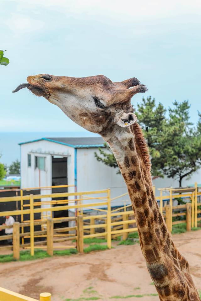 长颈鹿除了脖子长,其实还有长长的舌头。拿着树叶,看着长颈鹿伸出长长的舌头卷走叶子,非常好玩。