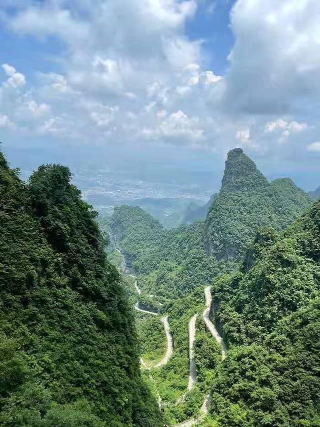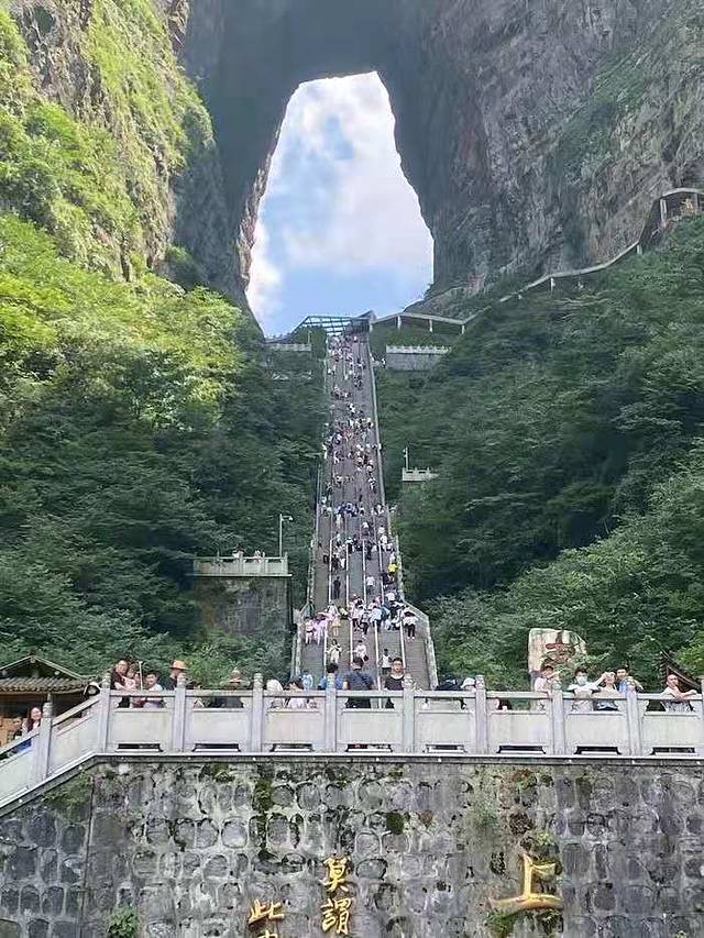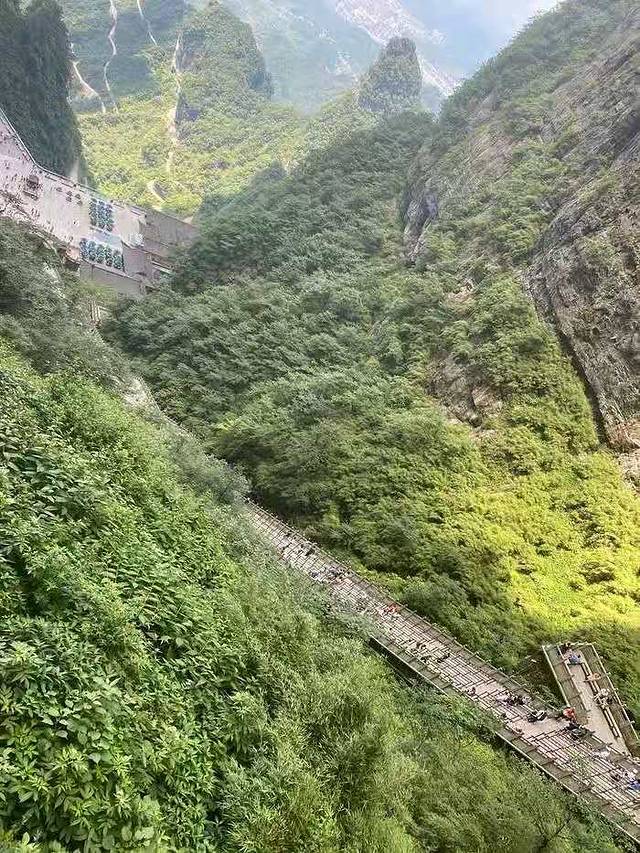 去天门山这天赶上早上下雨,上山后一直雾蒙蒙的也看不清楚景色,不过雾很快就散了,露出来天门山本来的模样,我们还是很幸运的,天门洞、天梯、通天大道都看到了,特别的壮观。